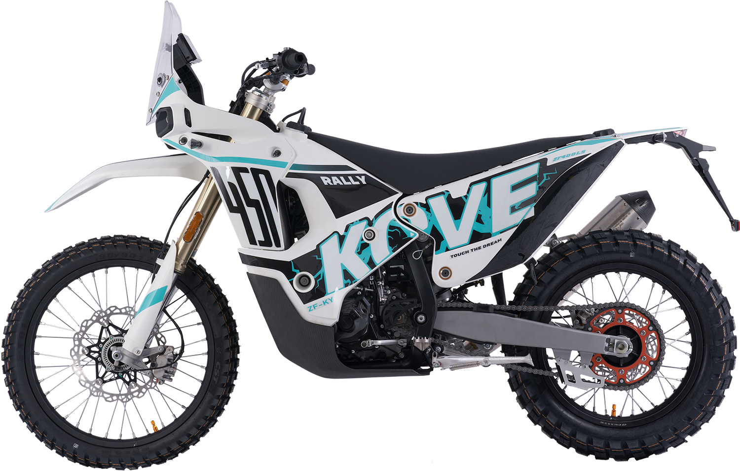 The 450 RALLY isn’t merely inspired by the rally; it’s rally-INHERENT! Built from the ground up as a competitive rally motorcycle, capable of standing shoulder-to-shoulder with the most premium factory race bikes, the KOVE 450 RALLY is primed and ready to accompany you on your next thrilling adventure!