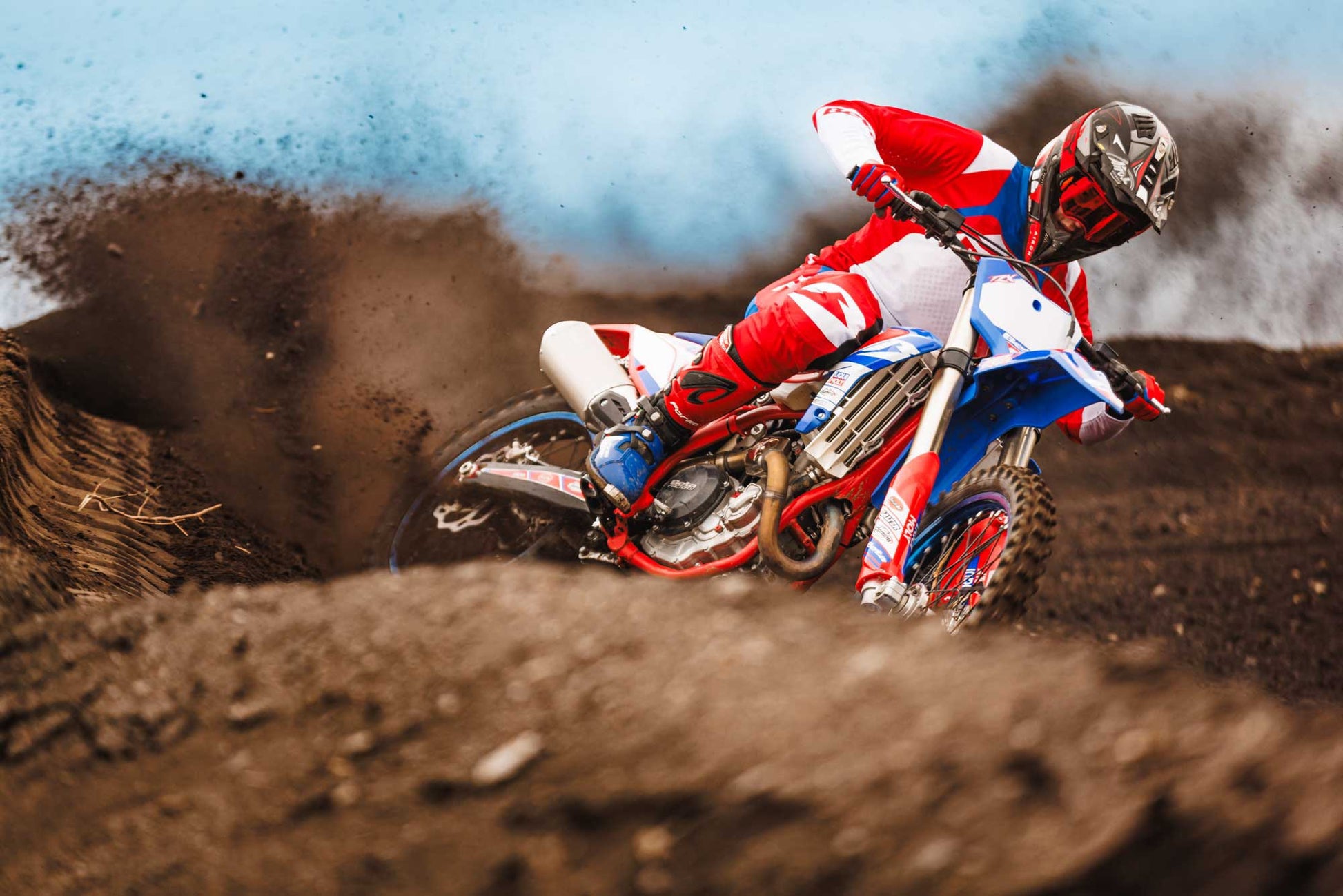 Beta has kept no secrets in their desire to chase the world of motocross, with the early USA introduction of the 300 RX 2 stroke model in 2021 about the same time as the first shots were taken of the prototype 450 RX 4 stroke model racing in the MXGP championship. It is officially the first four-stroke motocross bike built by Beta, the 450 RX model was designed to carry on the Beta tradition of Rideability. To offer a ride that is more forgiving while still providing performance that will encourage aggressive riding.