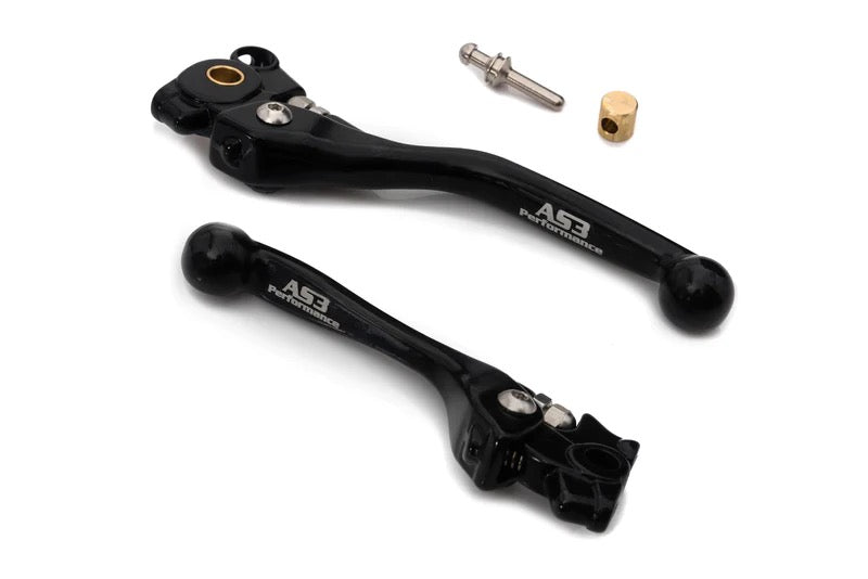 AS3 Performance front brake and clutch levers are direct replacements for the OEM levers. They are also cold forged which allows the levers to bend on impact rather than snapping like most OEM cast levers would. The levers are anodised in black and feature AS3 Performance branding.