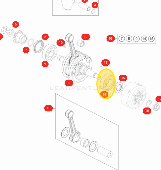 KTM OEM CRANK ROLLER BNG NJ205 85SX 25X52X15 23.NJ205 49030023000