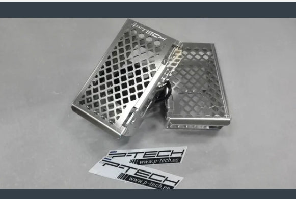The radiator guard is made from 4mm 5754 aluminum. Guard protects radiators from impacts, twisting, stones, bending. Kit includes all necessary parts for mounting, right & left rearguard and right & left front guard. Rearguards can be used with OEM plastic guards.