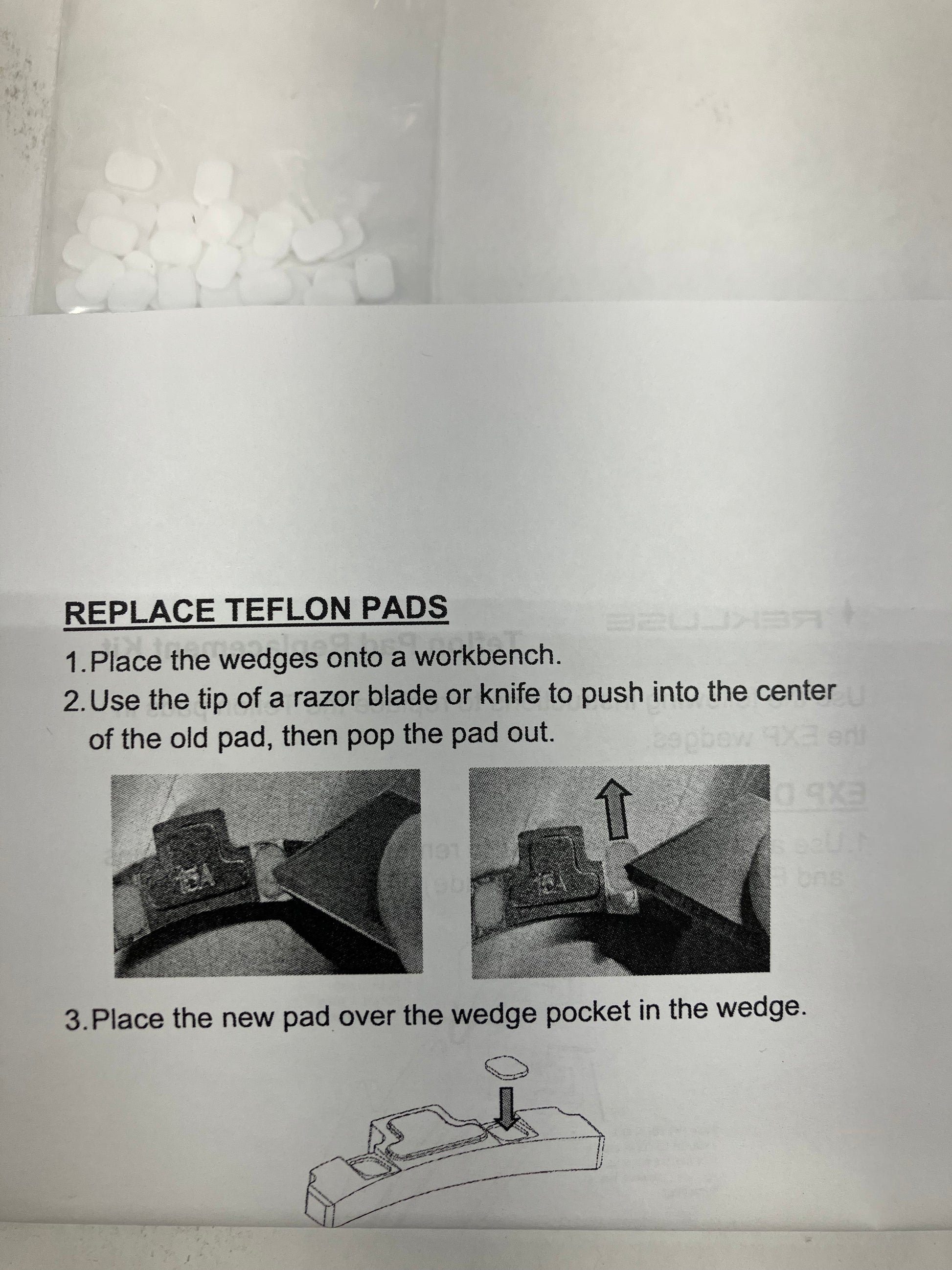 Includes 30 teflon pads for a complete replacement for a single EXP system. Each wedge requires 4 teflon pads, each EXP has 6 wedges. There are 6 extra pads.